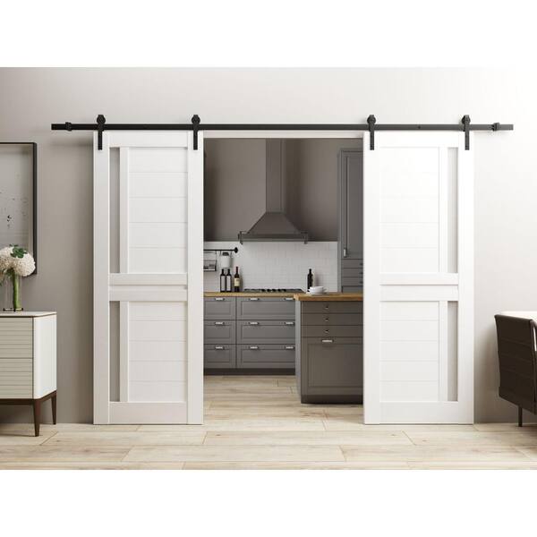 24 in. x 80 in. 2 Panel Frosted Glass White Solid Wood Sliding Barn Door with Hardware Kit
