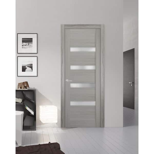 24 in. x 84 in. 1 Panel Gray Ash Finished MDF Sliding Door with Hardware