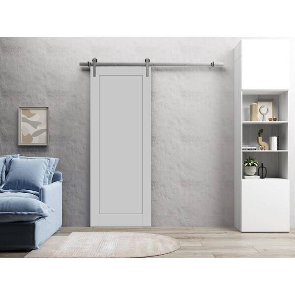 24 in. x 84 in. 1 Panel Matte Grey Solid MDF Sliding Barn Door with Hardware Kit