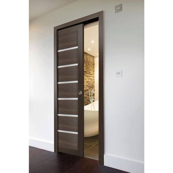 24 in. x 96 in. 1 Panel Chocolate Ash Finished MDF Sliding Door with Hardware