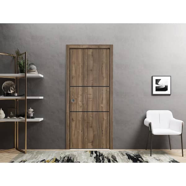 24 in. x 96 in. 1 Panel Walnut Finished Solid Wood with Honeycomb Sliding Door with Hardware