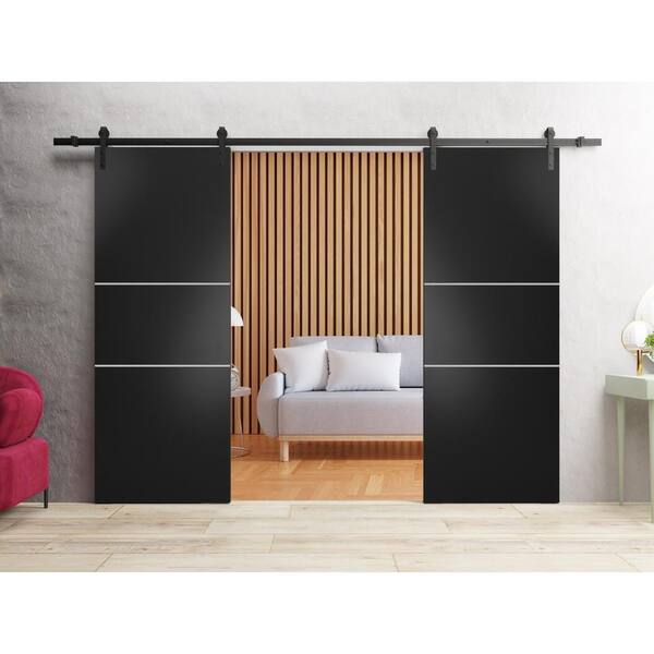 24 in. x 96 in. 2 Panel Black Matte Solid Wood with Honeycomb Sliding Barn Door with Hardware Kit