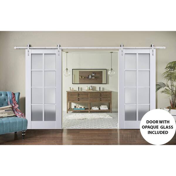 24 in. x 96 in. 2 Panel Frosted Glass White Solid Wood Sliding Barn Door with Hardware Kit