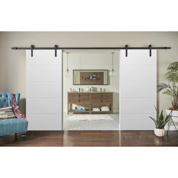 • Includes 2 door slabs, steel track rail, hangers with wheels