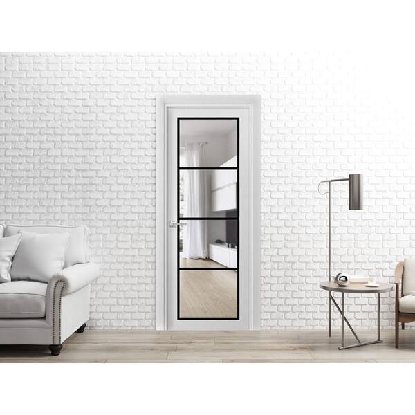 2466 42 in. x 80 in. Right-Hand/Inswing Solid Clear Glass White Single Prehung Interior Door with Hardware