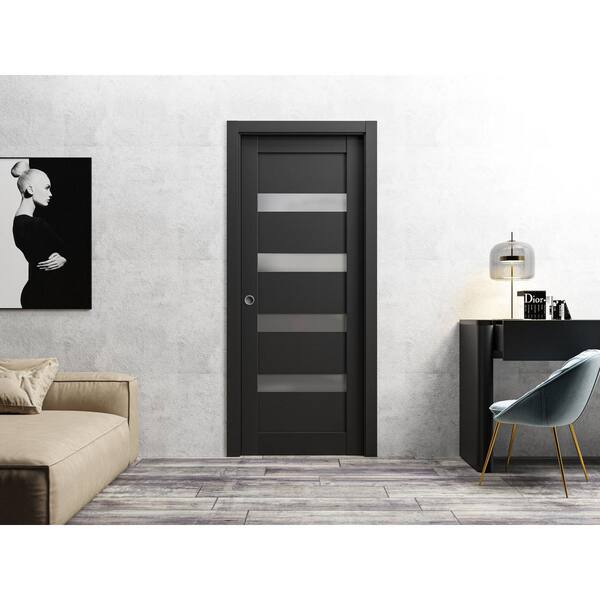 28 in. x 80 in. 1 Panel Black Matte Finished MDF Sliding Door with Hardware
