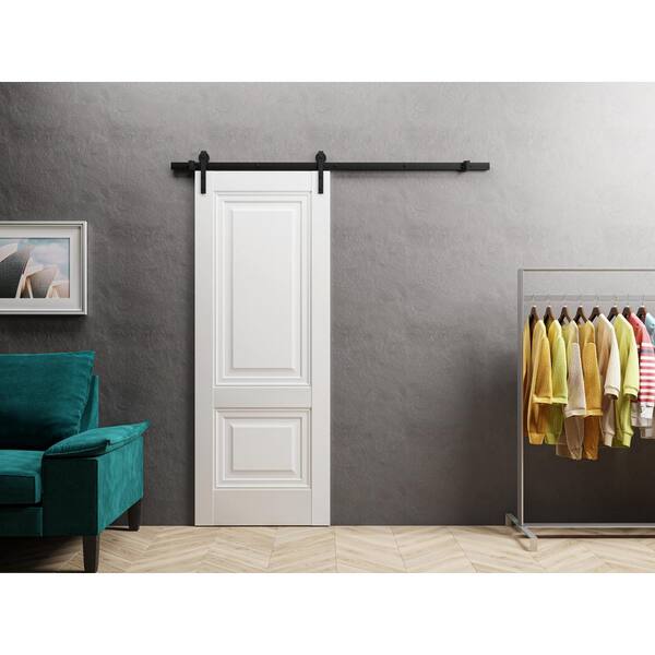 28 in. x 80 in. 1 Panel Frosted Glass White Solid Wood Sliding Barn Door with Hardware Kit