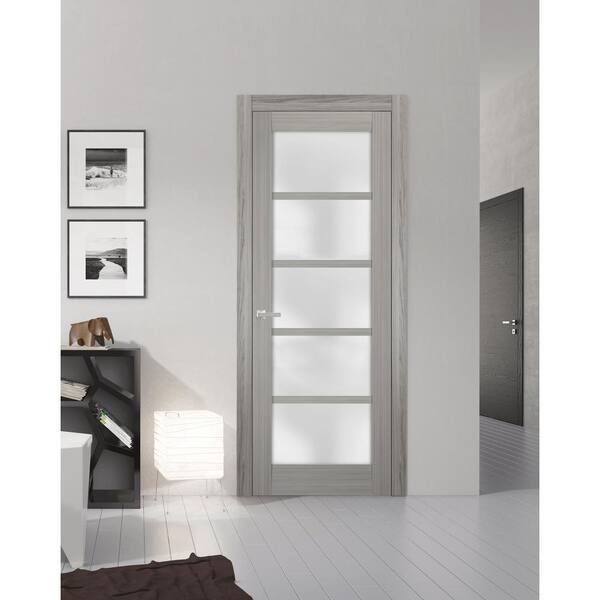 28 in. x 80 in. 1 Panel Gray Ash Finished MDF Sliding Door with Hardware