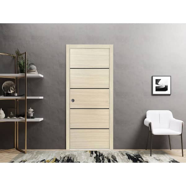 28 in. x 80 in. 1 Panel Natural Veneer Finished Solid Wood with Honeycomb Sliding Door with Hardware