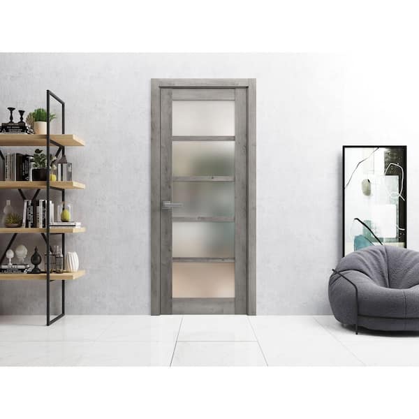 28 in. x 80 in. 1 Panel Nebraska Grey Finished MDF Sliding Door with Hardware