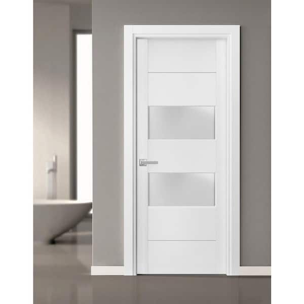 28 in. x 80 in. 1 Panel White Finished Solid Wood Sliding Door with Hardware