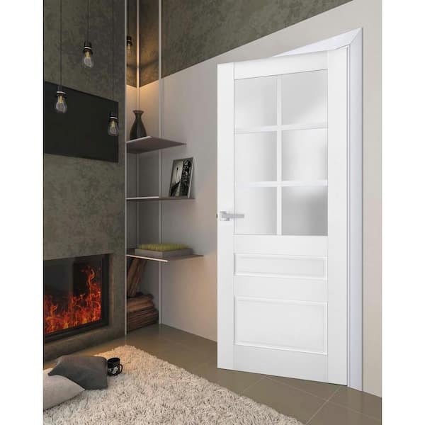 28 in. x 80 in. 1 Panel White Finished Solid Wood Sliding Door with Hardware