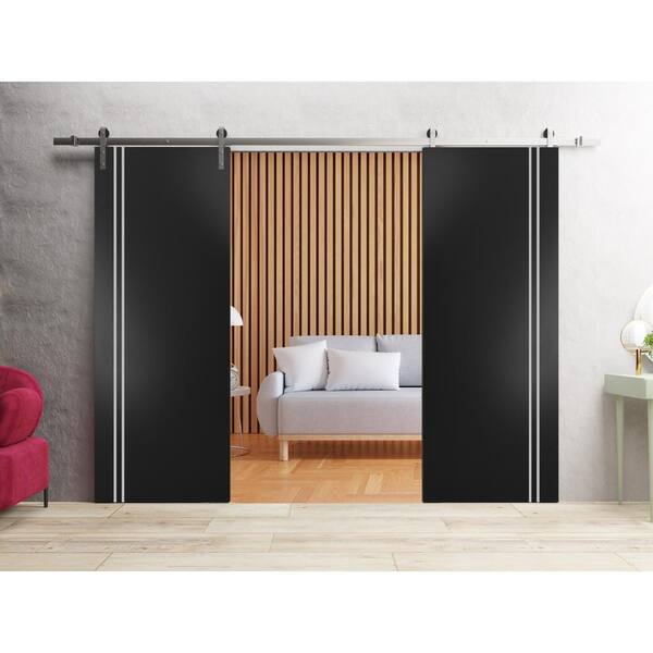 28 in. x 80 in. 2 Panel Black Matte Solid Wood with Honeycomb Sliding Barn Door with Hardware Kit