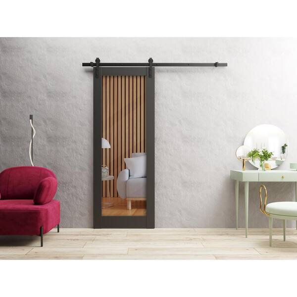 28 in. x 84 in. 1 Panel Clear Glass Black Matte Solid Wood Sliding Barn Door with Hardware Kit