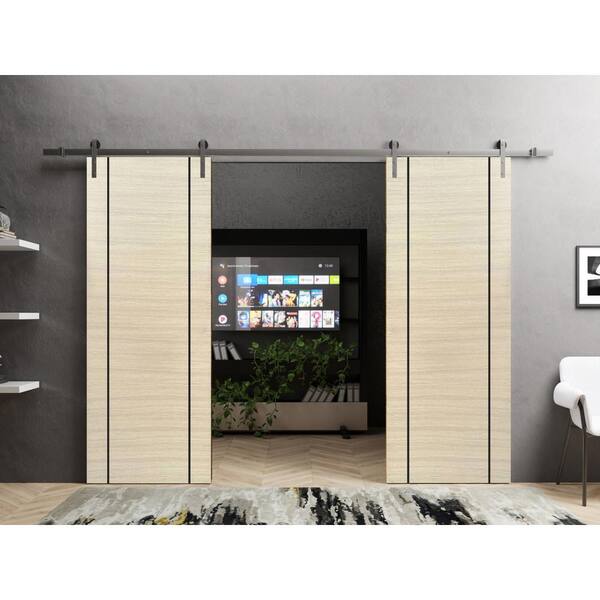 28 in. x 84 in. 2 Panel Natural Veneer Solid Wood with Honeycomb MDF Sliding Barn Door with Hardware Kit