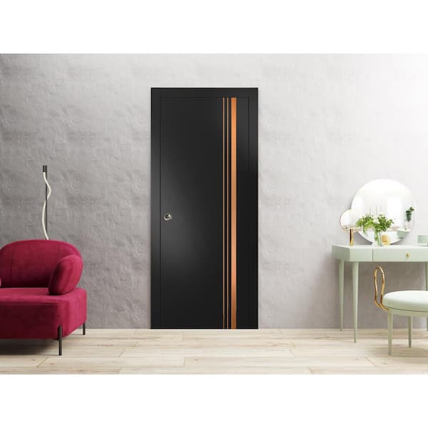 28 in. x 96 in. 1 Panel Black Matte Finished Solid Wood with Honeycomb Sliding Door with Hardware