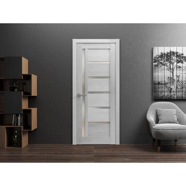 28 in. x 96 in. 1 Panel Light Grey Oak Finished MDF Sliding Door with Hardware