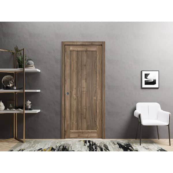 28 in. x 96 in. 1 Panel Walnut Finished MDF Sliding Door with Hardware