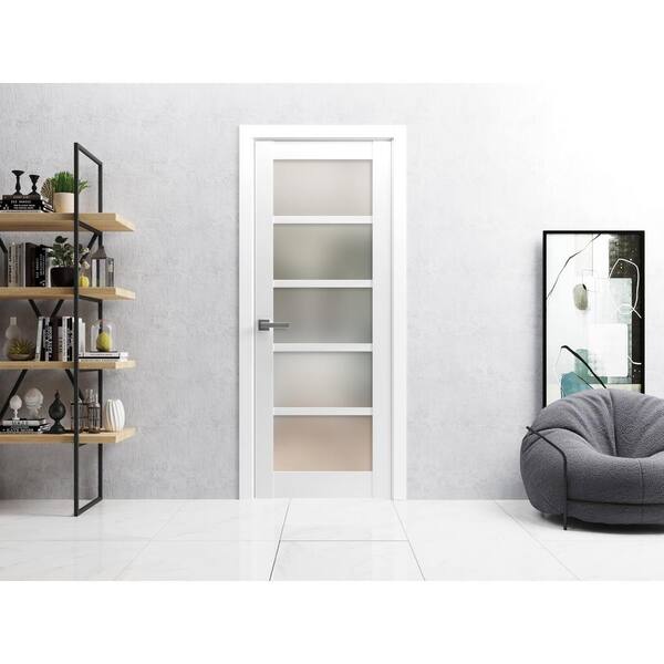 28 in. x 96 in. 1 Panel White Finished Solid MDF Sliding Door with Hardware
