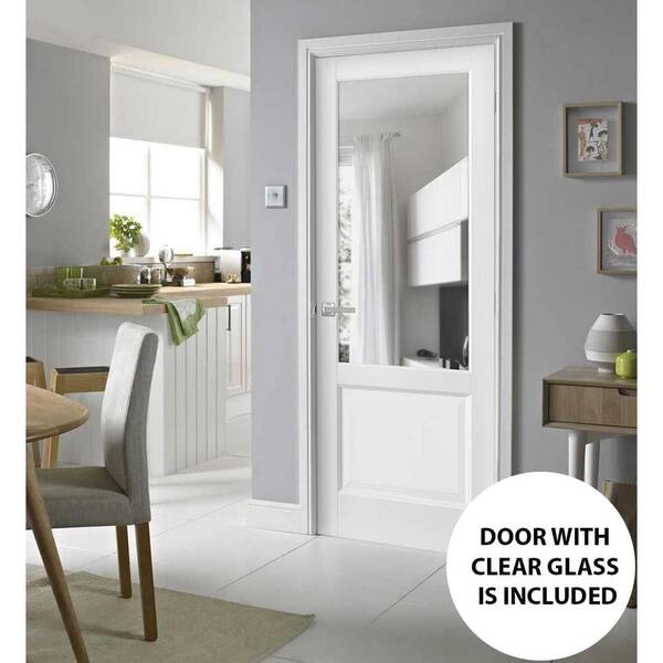 30 in. x 80 in. 1-Panel White Finished MDF Sliding Door with Hardware