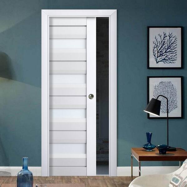 30 in. x 80 in. 1 Panel White Finished Solid Wood Sliding Door with Hardware