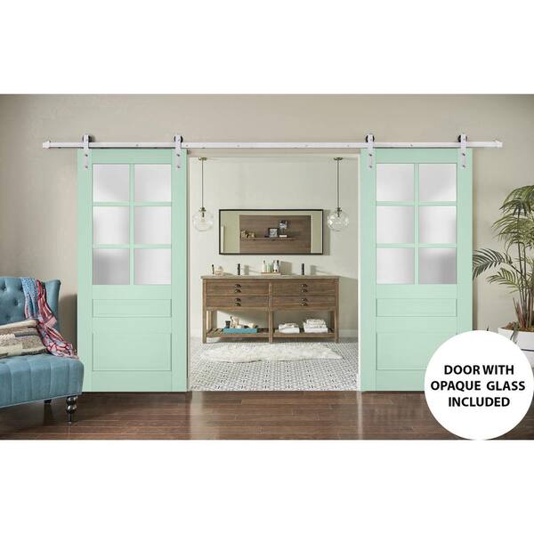 30 in. x 80 in. 2 Panel Frosted Glass Oliva Solid Wood Sliding Barn Door with Hardware Kit