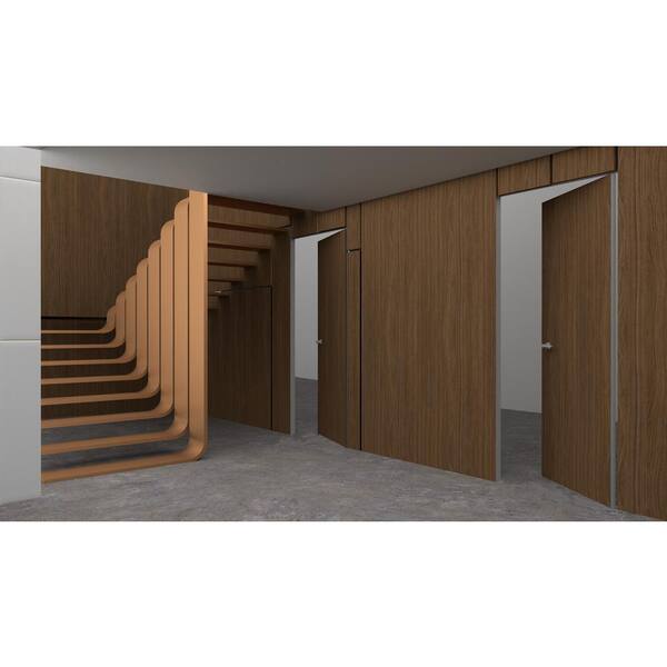 30 in. x 80 in. Unassembled Right-Hand/Inswing Solid Core Walnut Flush Mount Hidden Door with Silver Hinge Finish