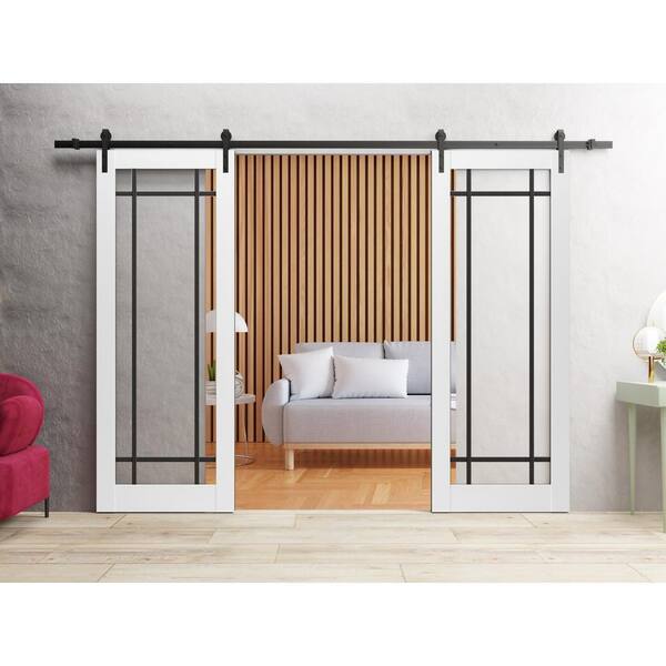 30 in. x 84 in. 2 Panel Clear Glass White Solid Wood Sliding Barn Door with Hardware Kit