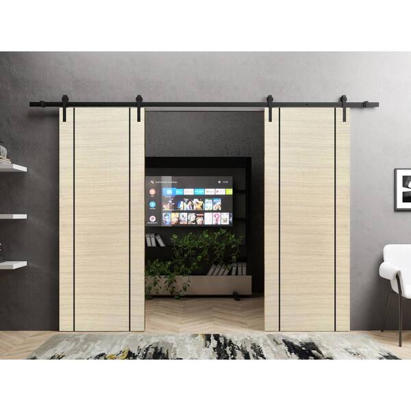 30 in. x 84 in. 2 Panel Natural Veneer Solid Wood with Honeycomb Sliding Barn Door with Hardware Kit