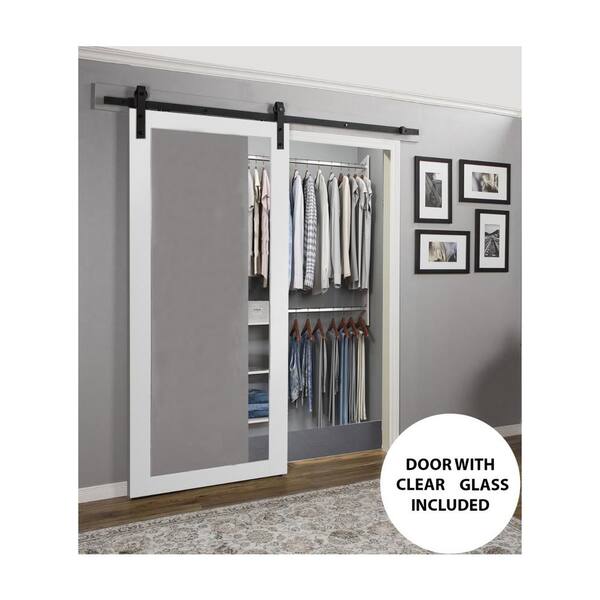 30 in. x 96 in. 1 Panel Clear Glass White Solid Wood Sliding Barn Door with Hardware Kit