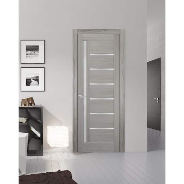 30 in. x 96 in. 1 Panel Gray Ash Finished MDF Sliding Door with Hardware