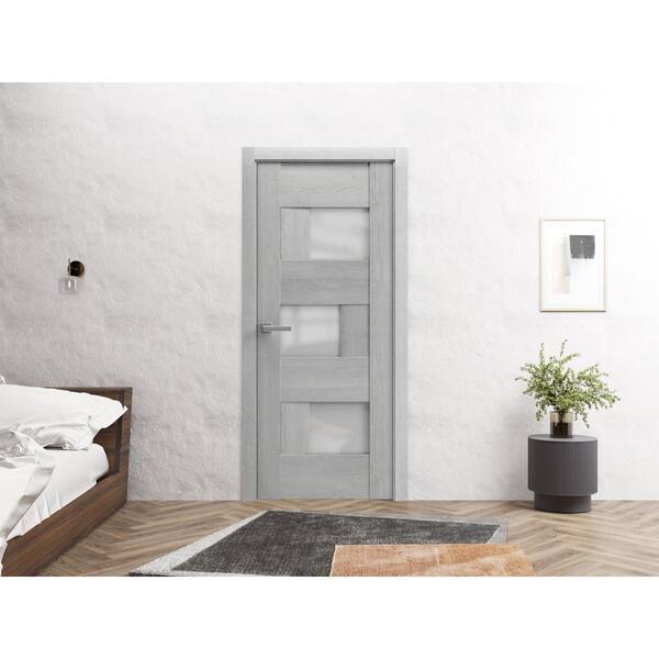 30 in. x 96 in. 1-Panel Light Grey Oak Color Finished Solid MDF Sliding Door with Hardware
