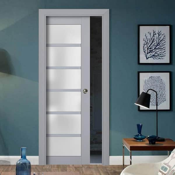 30 in. x 96 in. 1 Panel Matte Grey Finished Solid Wood Sliding Door with Hardware