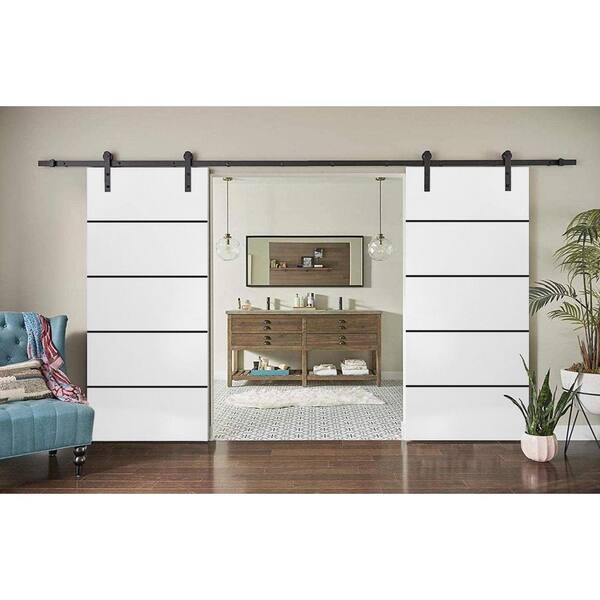 30 in. x 96 in. 2 Panel White Solid Wood with Honeycomb Sliding Barn Door with Hardware Kit