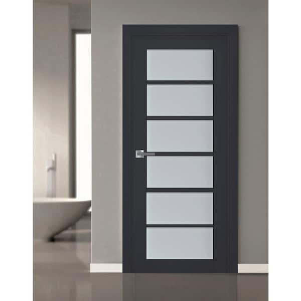 32 in. x 80 in. 1 Panel Antracite Finished Solid Wood Sliding Door with Hardware