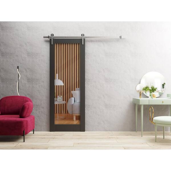 32 in. x 80 in. 1 Panel Clear Glass Black Matte Solid Wood Sliding Barn Door with Hardware Kit