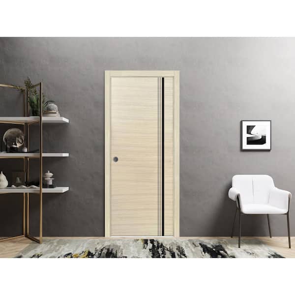 32 in. x 80 in. 1 Panel Natural Veneer Finished Solid Wood with Honeycomb Sliding Door with Hardware