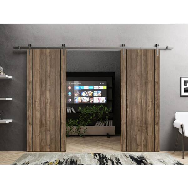 32 in. x 80 in. 2 Panel Walnut Solid Wood with Honeycomb Sliding Barn Door with Hardware Kit