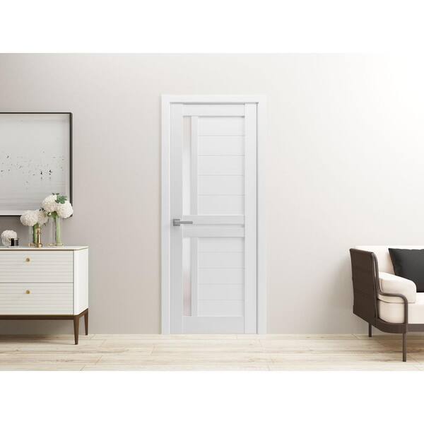 32 in. x 84 in. 1 Panel White Finished MDF Sliding Door with Hardware