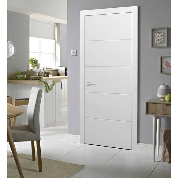 32 in. x 96 in. 1 Panel Painted White Finished Solid Wood Sliding Door with Hardware
