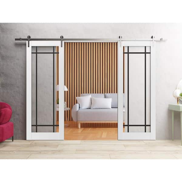 32 in. x 96 in. 2 Panel Clear Glass White Solid Wood Sliding Barn Door with Hardware Kit