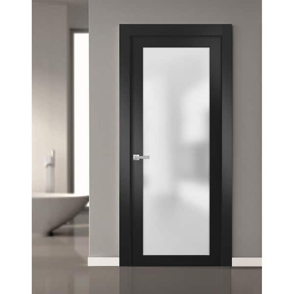 36 in. x 80 in. 1 Panel Black Matte Finished Solid Wood Sliding Door with Hardware