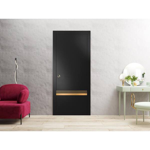 36 in. x 80 in. 1 Panel Black Matte Finished Solid Wood with Honeycomb Sliding Door with Hardware