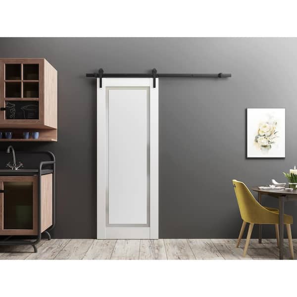 36 in. x 80 in. 1 Panel Frosted Glass Painted White Solid Wood Sliding Barn Door with Hardware Kit