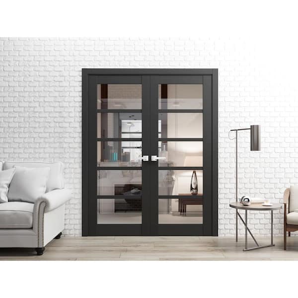 36 in. x 80 in. 2 Panel Black Matte Finished Solid MDF Sliding Door with Hardware