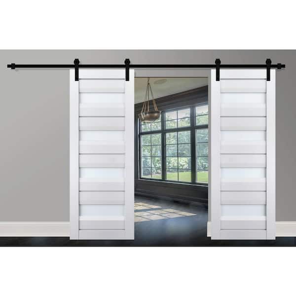 36 in. x 80 in. 2 Panel Frosted Glass White Solid Wood Sliding Barn Door with Hardware Kit