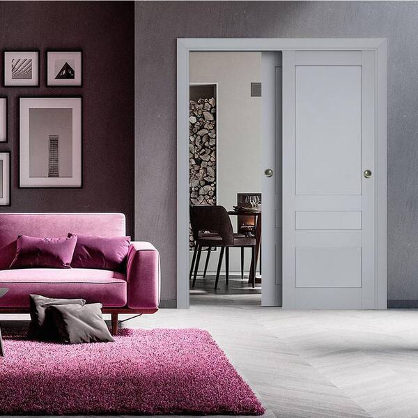 36 in. x 80 in. 2 Panel Matte Grey Finished Solid Wood Sliding Door with Hardware