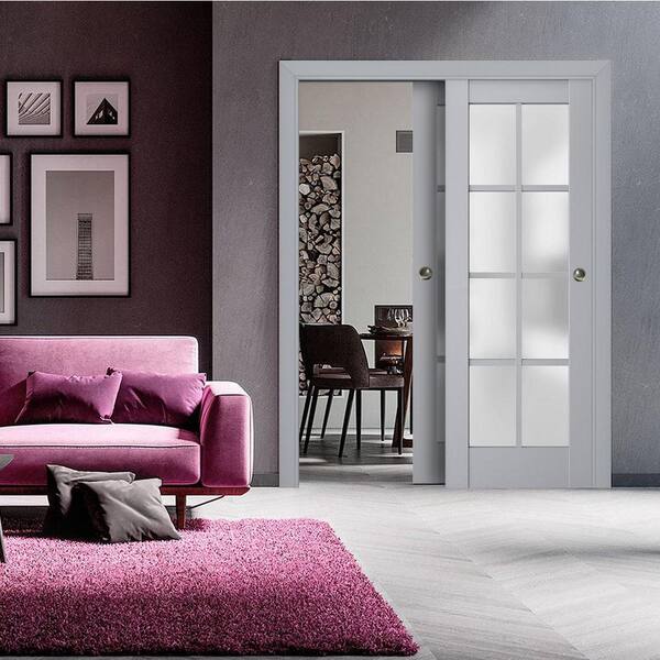 36 in. x 80 in. 2 Panel Matte Grey Finished Solid Wood Sliding Door with Hardware