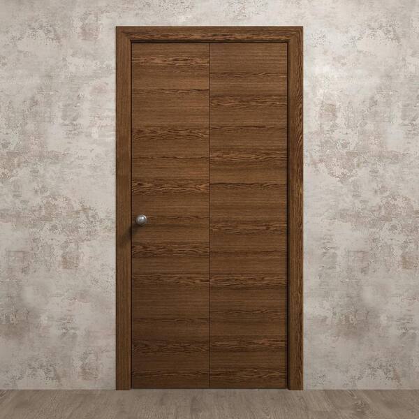 36 in. x 80 in. Cognac Oak Solid Wood Bi-Fold Doors With Hardware