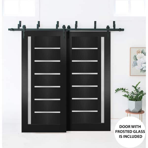 36 in. x 80 in. Solid MDF Frosted Glass Black Matte Interior Door Slab